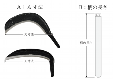 ・柄の長さは全国の一般サイズを記入しております。上記以外のA(刃寸法)とB(柄の長さ)の組み合わせ等、